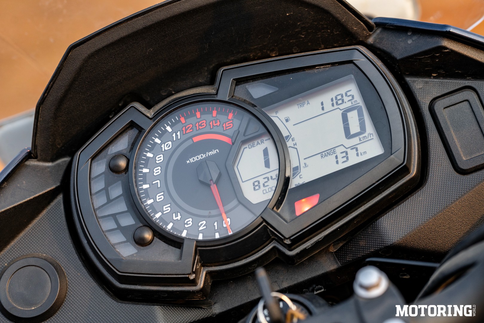 The halogen headlamp works better than the stock LED units on many modern motorcycles. The console shows you what you need and nothing more. And the analogue tachometer sweeping all the way to its 12,800-rpm redline adds a layer of involvement that TFT dashboards have quietly erased. There’s nothing to configure, no modes to cycle through. You just ride.